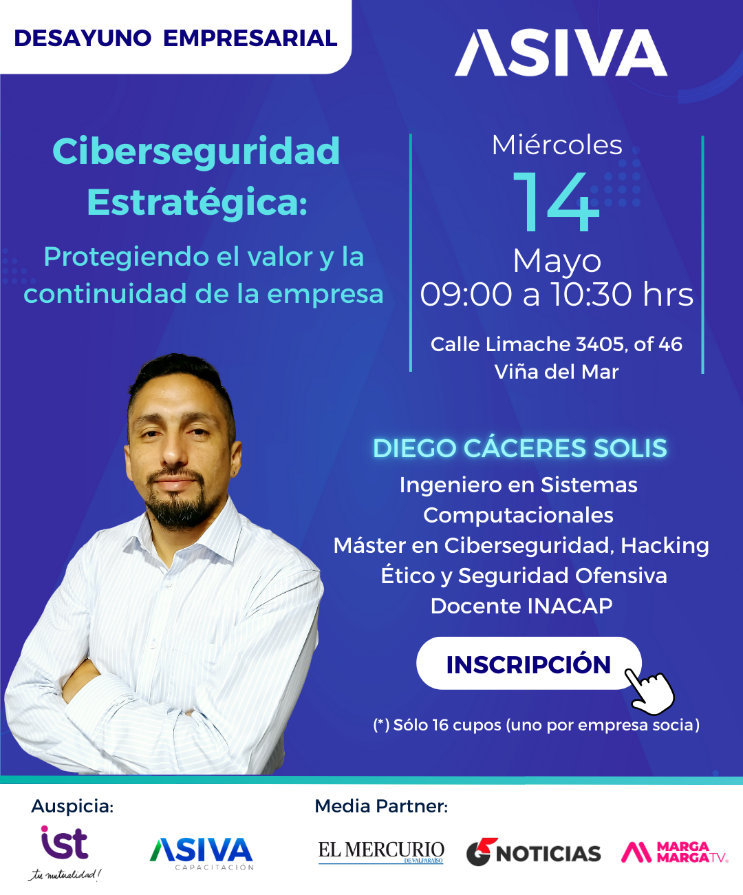 🔐 ASIVA te invita al Desayuno Empresarial: “Ciberseguridad Estratégica” Aprende a proteger el valor y la continuidad de tu empresa frente a amenazas digitales.