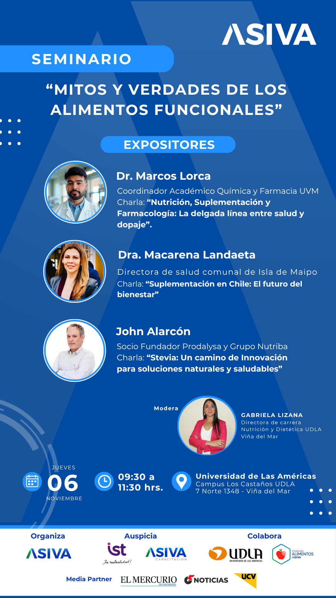 ASIVA, en colaboración con la Comisión Alimentos y Universidad de las Américas, invita a participar en este seminario que abordará los avances científicos, tecnológicos y regulatorios que están transformando la forma en que entendemos la suplementación y el bienestar integral.