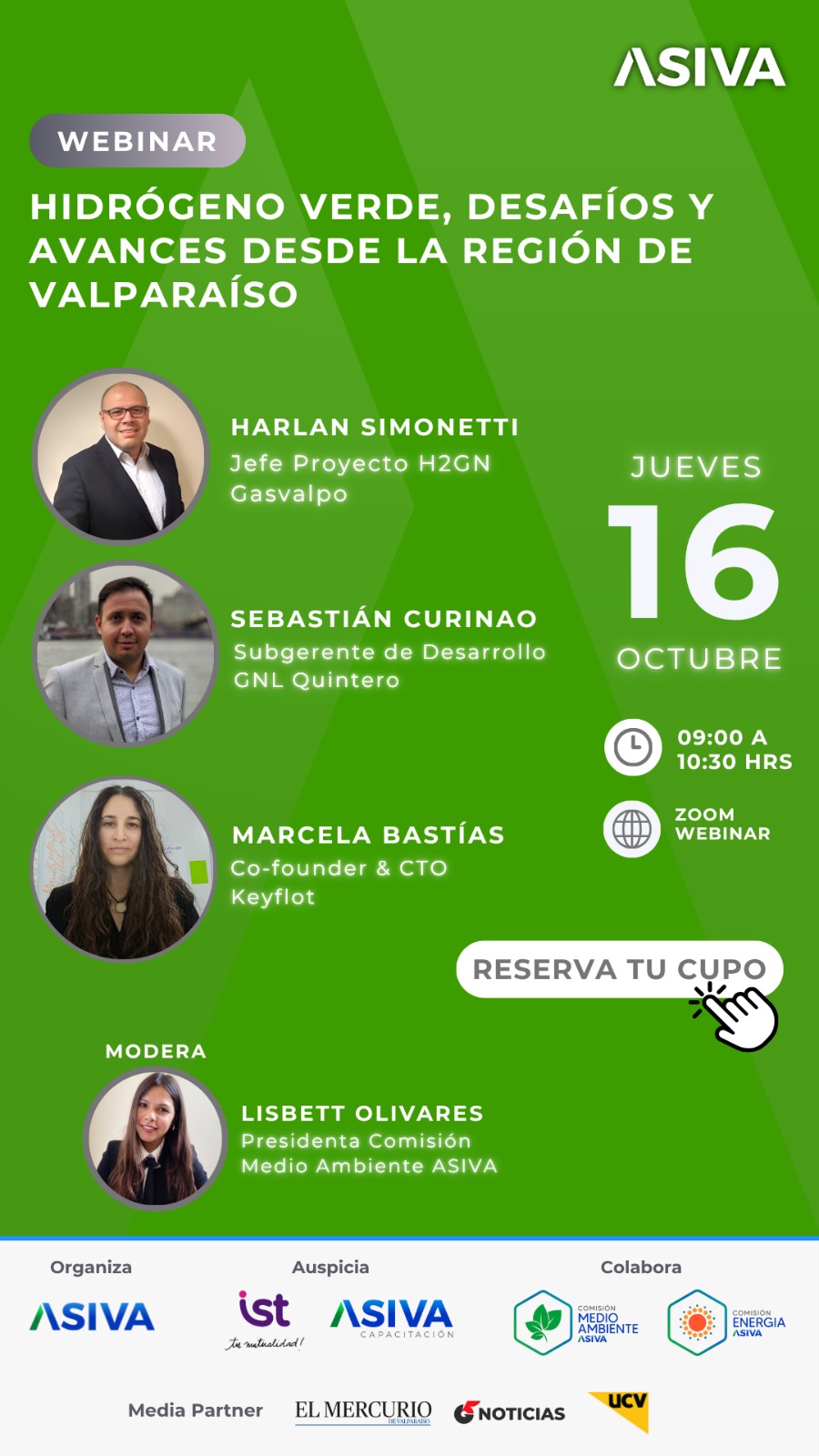 ASIVA, en colaboración con la Comisión Medio Ambiente y Comisión Energía, invita a participar en el Webinar Hidrógeno Verde, Desafíos y Avances desde la región de Valparaíso