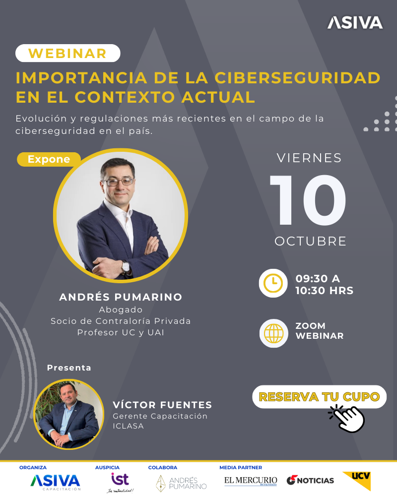 ASIVA Capacitación invita al Webinar “Importancia de la Ciberseguridad en el contexto actual”.